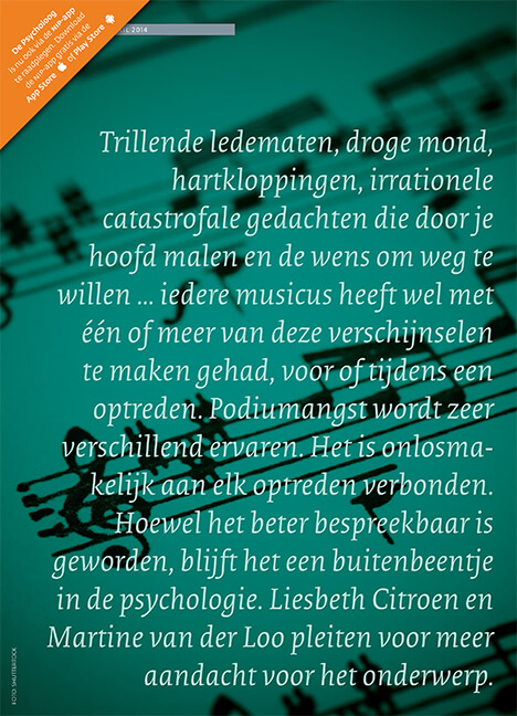 Daarnaast is Martine van der Loo psycholoog en cognitief gedragstherapeut. Ze heeft zich gespecialiseerd in de mentale begeleiding van professionele musici, conservatoriumstudenten en gevorderde amateurs. Haar doel is om musici te ondersteunen om optimaal te presteren op de momenten waar het om gaat. Als psycholoog zit Martine in de unieke positie dat zij zelf uitvoerend musicus is.